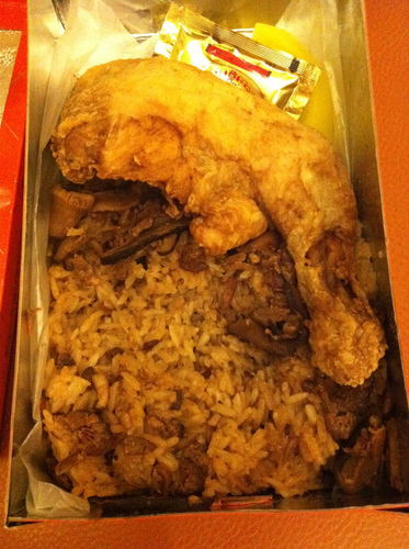 其實油飯上面鋪著滿滿的香菇絲與肉絲