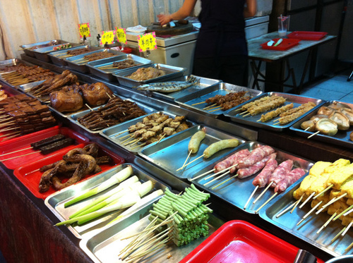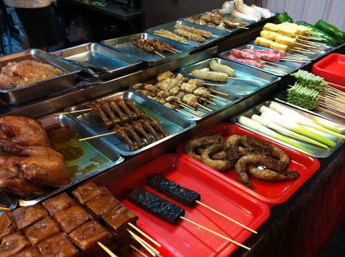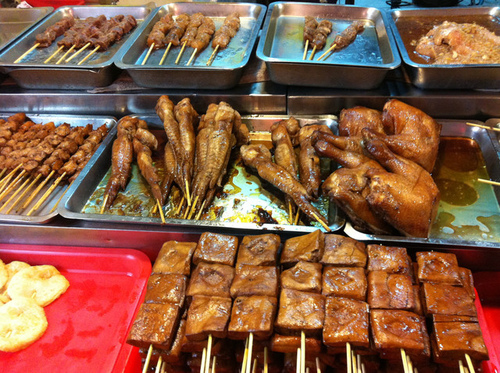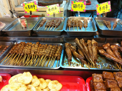 這裡的選擇有很多,我們大多會點三星肉串、甜不辣、豬血糕(蒸過,所以非常軟q)、雞屁股、杏鮑菇、青椒、四季豆、雞皮、豆干(先滷過不會像其他家沒有味道),爾而會點雞排(平日供應)、雞翅、雞腸等,每次隨便買買也是200300之間!!